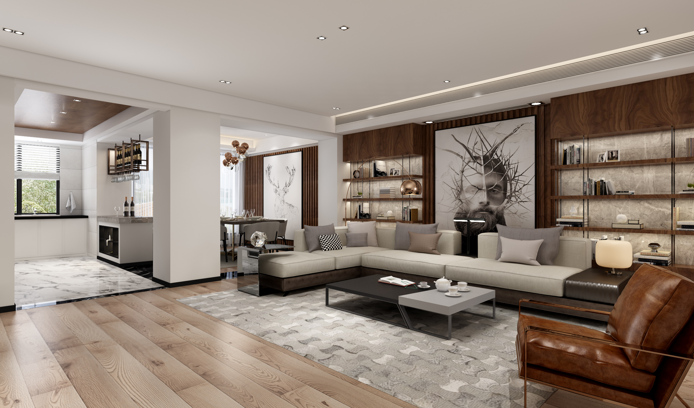 动线流畅,客厅的酒柜或橱子务必紧贴墙壁,另外沙发也须面对门或电视,千万不可背门,因为沙发背门会让自己的人际关系不融洽,且易犯小人。